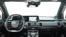 Der vergleichsweise lange Radstand des Urban Cruiser (+140 mm gegenüber dem Yaris Cross) ist der Schlüssel zu einem geräumigen und vielseitigen Innenraum. Das Raumgefühl und die Offenheit werden durch ein niedrig angesetztes Armaturenbrett mit markanten horizontalen Linien und Soft-Touch-Oberflächen verstärkt. Die authentische SUV-DNA zeigt sich in einer hohen Sitzposition mit ausgezeichneter Rundumsicht – sowohl für Fahrer als auch für Passagiere. Um die Sicht auf das digitale Kombiinstrument zu verbessern, wurde das Lenkrad oben leicht abgeflacht – ein Designmerkmal, das zudem mit der Linienführung des Armaturenbretts harmoniert. Die Mittelkonsole positioniert die wichtigsten Bedienelemente in unmittelbarer Reichweite, darunter einen Drehschalter für die Gangwahl, die elektrische Parkbremse und – sofern vorhanden – Schalter für den Allradmodus. Becherhalter und ein kabelloses Smartphone-Ladeschale erstrecken sich brückenartig über ein praktisches offenes Ablagefach. Dieser untere Bereich beherbergt außerdem eine 12-Volt-Steckdose sowie USB-A- und USB-C-Anschlüsse zum Verbinden und Laden von Geräten. Durch ein vereinfachtes Design wurden einige Bedienelemente von physischen Schaltern auf die zentrale Multimedia-Touchscreen-Steuerung verlagert, darunter auch die Sitzheizung. Die Klimaanlage lässt sich entweder über Tasten oder über den Touchscreen bedienen.