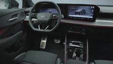 Im Vergleich zum Vorgängermodell wurden Design und Funktionalität nochmals deutlich gesteigert. Sein kontrastreicher Aufbau platziert bewusst Elemente im Vorder- oder Hintergrund und kreiert so eine wohnliche Raumarchitektur. Eine großzügige Applikationsfläche, der sogenannte Softwrap, erstreckt sich von den Türen über die gesamte Schalttafelbreite und unterstreicht die horizontale Ausrichtung für maximales Raumgefühl. Im Zentrum bildet das Panoramadisplay mit 11,9“ Kombiinstrument und 12,8“ MMI-Touch-Display die sogenannte Digital Stage. Diese erzeugt durch das Curved-Design eine fahrerorientierte Cockpit-Geste. Damit transferiert Audi die Digital Stage aus der Oberklasse ins Kompaktsegment. Ein Head-up-Display zur Darstellung wichtiger Informationen ergänzt die Anzeigen. Flach liegende Türgriffe und eine modern aufgeräumte Konsole unterstreichen das Raumgefühl und den Komfort. Hohen Praxisnutzen hat die neue Lenkradbedieneinheit. Diese integriert erstmalig zwei neue Lenkstockhebel und schafft damit mehr Stauraum in der Mittelkonsole, ein neues Bedienerlebnis sowie ein besseres Raumgefühl. Der rechte dient als Gangwahlhebel, der linke als Bedienelement für die Lichtfunktionen und die Scheibenwischer. Durch den Entfall des Gangwahlhebels in der Mittelkonsole ergibt sich ein höheres Platzangebot in der Konsole mit zwei Cupholdern. Die gekühlte induktive Ladeschale mit 15 Watt Ladeleistung inklusive zweier USB-C-Anschlüsse kann bei Bedarf durch ein Rollo geschlossen werden. Zwei weitere USB-C-Anschlüsse befinden sich im Fond.