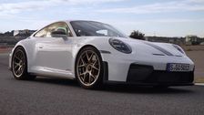 Dabei erlauben die Weiterentwicklungen der 911-Baureihe, das Aerodynamik- und Kühlluftkonzept des 911 GT3 weiter zu verbessern. Das Ziel ist dabei immer die bestmögliche Reduzierung des Auftriebs bei geringstmöglichem Luftwiderstand. Die neu gestalteten Matrix-LED-Hauptscheinwerfer des 911 mit der typischen 4-Punkt-Lichtsignatur integrieren alle Lichtfunktionen. Optional umschließt ein weißer Akzentring den Hauptscheinwerfer. Im Frontbereich entfallen die separaten Bugleuchten. Dies ermöglicht eine vergrößerte Lufteintrittsfläche. Sie prägt das Bugteil gestalterisch und funktional mit klaren, prägnanten Konturen und führt den vorderen Bremsen und den vorderen Kühlern des Antriebs noch mehr Kühlluft zu. Sie tritt durch den Luftauslass in der Fronthaube als Abluft wieder aus. Gleichzeitig wird der Auftrieb an der Vorderachse reduziert - wie im Motorsport üblich: Form folgt Funktion. Aerodynamisch geformte Längslenker an der Vorderachse verbessern die Aerodynamik des 911 GT3 zusätzlich. Sie reduzieren vor allem bei hohen Geschwindigkeiten die Verwirbelungen in den stark durchströmten vorderen Radhäusern. Die Tropfenform der Bauteile übernimmt der 911 GT3 vom 911 GT3 RS. Das Grundprinzip der funktionalen Performance gilt auch für die neu gestaltete Bugspoilerlippe. Zusammen mit der veränderten Kontur des Frontdiffusors reduziert sie den Auftrieb an der Vorderachse. Diese Maßnahmen verbessern im Zusammenspiel mit Optimierungen an der Unterbodenverkleidung die Unterbodenströmung und die aerodynamische Balance des Sportwagens. Wie beim Vorgängermodell befinden sich zusätzliche Luftauslässe in der Heckverkleidung. Der neu gestaltete Heckdeckel verbessert die Kühlluftzufuhr zum Aggregat weiter.