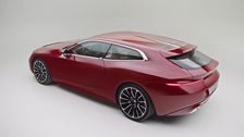 Die ausgeprägte V-Form der Front im Sharknose-Design, die schmalen Frontleuchten und die beleuchtete Niere verleihen dem BMW Concept Speedtop eine unverwechselbare Präsenz. Der Übergang des Mittelstegs von der Motorhaube über das Dach bis zum Heckspoiler verleiht dem Fahrzeug ein dynamisches Touring-Profil. Ein Farbverlauf auf dem Dach von „Floating Sunstone Maroon“ zu „Floating Sundown Silver“ betont diese Linienführung. Das athletische Design wird über die breite Schulterpartie verstärkt. Die Eleganz des Fahrzeugs wird durch zweifarbige, 14-speichige Fächerfelgen unterstrichen, die speziell für das BMW Concept Speedtop entworfen wurden.