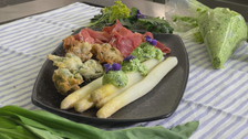 Spargel mal anders: Mit Bärlauchbutter und einer ungewöhnlichen Beilage aus der Natur – zubereitet von Wildkräuter-Expertin Waltraud Witteler.
