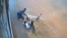 Von Flut mitgerissen: Mann springt Mutter und Kind hinterher
