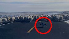 Ungewöhnlicher Job: Schwein treibt Schafherde über die Straße