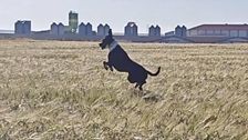 Wie ein Hase: Hündin Luna springt Kaninchen hinterher