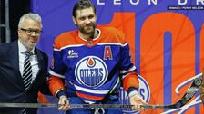 Emotionale Ehrung: Leon Draisaitl ist vor den Augen seiner Familie und seiner 82-jährigen Omi für seine 1000 Scorerpunkte in der NHL ausgezeichnet worden. Obwohl der Kölner im anschließenden Spiel gegen die Los Angeles Kings doppelt trifft, gibt es ihn und die Oilers an diesem Abend einen Dämpfer.