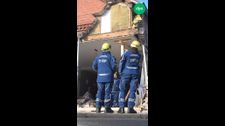 Mitten in der Nacht kracht ein Auto in ein Wohnhaus. Teile der Seitenwand stürzen ein, Steine fliegen meterweit über die Straße. Das Gebäude ist einsturzgefährdet und muss gesichert werden.