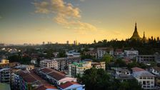 Erleben Sie Yangon in Myanmar aus der Vogelperspektive im goldenen Glanz. Der Drohnenflug konzentriert sich auf die prächtige Shwedagon-Pagode, deren massive, vergoldete Stupa die Skyline dominiert. Weiter geht es über den ruhigen Kandawgyi-See und die historische Sule-Pagode – eine Stadt, in der uralte spirituelle Stätten neben Architektur aus der Kolonialzeit und üppiger tropischer Vegetation stehen.