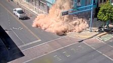 Knapp neben Auto: Hausfassade stürzt auf Straße