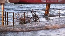 Sturmflut: Elbe schwappt am späten Nachmittag auf den Fischmarkt