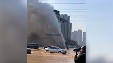 Im chinesischen Jinan schoss plötzlich meterhoch Wasser aus einer Straße. Der Grund: eine geplatzte Leitung.