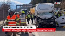 Sperre und Stau-Chaos Mittwochvormittag auf der A13 Brennerautobahn in Tirol: Bei Schönberg im Stubaital kam es zu einem heftigen Crash zwischen einem Lastwagen und einem Kleintransporter. Eine Person musste mit dem Notarzthubschrauber abtransportiert werden.