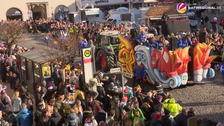 Gegen 12:30 Uhr startete der Zug in Kleve mit leichter Verspätung. 62 Zugnummern und 17 Fußgruppen sind dabei. Trotz Regen ist die Innenstadt voller Jecken. Das umstrittene Oktoberfest-Plakat des SV Donsbrüggen vom Herbst 2025 ist Thema im Zug und hat eine Gruppe zu ihrem Motto und den Kostümen animiert. Der SV Bedburg-Hau läuft mit einem Wagen aus Fußballtrikots auf. Jecken aus Groesbeek thematisieren den Feuerwerksverkauf in Kleve – und spielen damit auch auf das Böllerverbot in den Niederlanden an. Etwas mehr als drei Stunden ist der Zug unterwegs. Danach wir in Kneipen und vor allem im Festzelt am Spoykanal weitergefeiert.