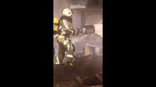 Meterhohe Flammen schlagen in den Himmel - Großaufgebot bei Hallenbrand