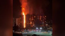 Flammenhölle in Hongkong: Wolkenkratzer stehen in Brand