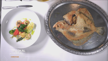 Curly bekommt zur Hauptspeise Steinbutt mit Gemüse, Kartoffelpüree und Beurre Blanc. Alles mundet – bis auf das zu bissfeste Gemüse, das ihm im wahrsten Sinne des Wortes harte Kritik einbringt.