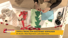 Haben Sie schon alle Geschenke verpackt? Wenn nicht, kein Problem! Denn wir haben praktische Tipps aus dem Netz für Sie. We-Reporterin Julia Ebermann zeigt uns, wie man einfach, schnell, aber trotzdem kreativ Geschenke für Weihnachten einpacken kann.