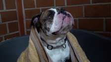 Bulldogge Kaido im Soester Park ausgesetzt