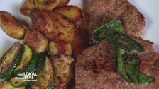 Es geht an die Hauptspeisen: Marvin unterstützt und darf sich gleich mal an die Kalbsleber ran machen. EIn wichtiger Tipp: Leber muss man immer leicht rosig servieren. Wie macht das Salvatore?