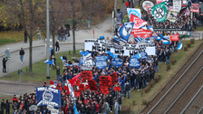 In Leipzig haben mehrere Tausend Fußballfans von insgesamt 50 Vereinen aus ganz Deutschland gegen schärfere Sicherheitsmaßnahmen in Stadien demonstriert. Ihr Motto: "Der Fußball ist sicher“.