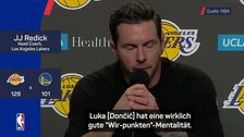 Nach dem 129:101-Sieg der Lakers gegen die Warriors schwärmt Coach JJ Redick von der selbstlosen Spielweise von Luka Dončić. Das Geburtstagskind glänzte mit 26 Punkten und 8 Assists.