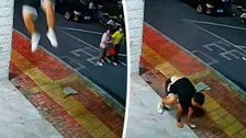 Spider-Man landet auf Gehweg: Mann federt Sturz durch Decke gekonnt ab