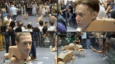 Bei der Kunstmesse "Art Basel Miami" Beach sorgt ein Werk von Mike "Beeple" Winkelmann für Aufsehen. Mehrere Roboterhunde mit den Köpfen von Künstlern und Tech-Milliardären laufen durch ein Gehege. Dabei filmen sie sich gegenseitig - und die Besucher.
