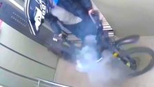 In Krasnodar in Russland stand ein Mann mit seinem E-Bike im Aufzug – plötzlich fing der Akku an zu qualmen. Der Radfahrer reagierte zum Glück blitzschnell.
