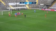 In der 86. Minut gelingt Anton Heinz mit einem sensationellen Freistoß aus dem rechten Halbraum der Anschlusstreffer!
