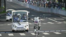 Es erinnert ein wenig an den Terminator: In Peking sind beim Halbmarathon rund 100 humanoide Roboter gegen Menschen angetreten. Dabei liefen Maschinen auf zwei Beinen erstmals schneller als der beste Mensch über die 21 Kilometer. Doch nicht jeder Roboter glänzte, es gab auch ganz "menschliche" Momente der Schwäche.