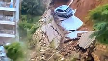 Parkplatz perfekt gewählt: Auto surft Erdrutsch herab