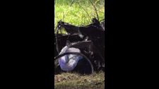 Ein Auto kommt von der Straße ab und wird völlig zerstört. Zwei junge Menschen werden schwer verletzt.
