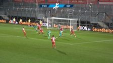 Kurz vor Schluss macht die SpVgg Greuther Fürth vorne noch mal Druck und kann den Ball nah am gegnerischen Tor erobern. Die Kugel kommt zu Halit Yilmaz, der versenkt den Ball mit einer feine Technik im Netz! Leider reicht es für die Fürther nicht mehr, denn das Tor kommt eindeutig zu spät.