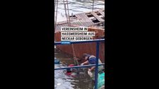 Das Vereinsheim des Haßmersheimer Bootsvereins ging Mitte Oktober bis zum Dach im Neckar unter. Am Samstag konnten es Taucher und THW nun bergen. Erst musste das zerstörte Holzhaus wieder aufgerichtet werden, um dass es danach fein säuberlich nach Bestandteilen entsorgt zu werden. Dafür standen ein großer Autokran aus Heidelberg und ein Baggerschiff aus Neckarsteinach bereit. Auch der Einsatz von Tauchern des Speyrer Motorsportclubs und elf Helfern des örtlichen Technischen Hilfswerks (THW) wurde benötigt. Das Vereinsheim, das zuvor drei Jahrzehnte in Greffern im Einsatz war, hatte in Haßmersheim 25 Jahre lang gute Dienste geleistet. Viel Herzblut und Eigenleistungen hatten die Vereinsmitglieder investiert, um es zu erneuern und instand zu halten. ➡️ Wie es mit dem Vereinsheim weitergeht und wie es überhaupt zum sinken kam, lest ihr auf stimme.de