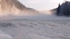 Spektakuläres Naturschauspiel: Aufnahmen zeigen „Eis-Tsunami“ auf zugefrorenem Fluss