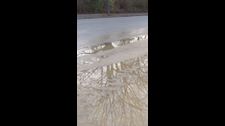 Wasser fließt nach einem Rohrbruch in Hamburg in die Nebenstraßen rund um eine Grundschule. Hamburg Wasser arbeitet an der Schadensstelle.