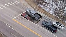 Schockmoment an einer roten Ampel in Omaha im US-Bundesstaat Nebraska: Der Asphalt öffnete sich plötzlich, zwei wartende Autos wurden von einem Senkloch verschluckt. Zum Glück ging der Vorfall glimpflich aus.