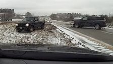 Aufnahmen einer Dashcam zeigen zwei verschiedene Unfälle auf einem vereisten Abschnitt der Interstate 70 in Belmont County, Ohio. Am 21. Januar verlor ein Sattelzug auf der glatten Fahrbahn die Kontrolle und prallte gegen eine Leitplanke. Wenige Minuten später kam ein SUV auf demselben Abschnitt der Autobahn ins Schleudern.