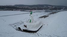 Eisschicht ummantelt Leuchtturm: Aufnahmen zeigen spektakuläres Naturschauspiel auf Rügen