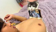 Zuneigung gesucht – Arbeit bekommen: Mann nutzt Katze als Handyhalter