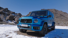 Mit dem G-TURN können Fahrerinnen und Fahrer die neue elektrische G-Klasse fast auf der Stelle drehen. Dabei vollzieht das Fahrzeug auf unbefestigtem oder losem Untergrund bis zu zwei vollständige Fahrzeugumdrehungen in die Wunschrichtung. Das sieht nicht nur spektakulär aus, sondern kann auch beim Fahren im Gelände hilfreich sein – wenn zum Beispiel ein vorausliegendes Hindernis die Weiterfahrt unmöglich macht. Die vier unabhängig voneinander angetriebenen Räder können das Fahrzeug wahlweise nach links oder rechts rotieren lassen. Dazu laufen sie auf der rechten und linken Fahrzeugseite in entgegengesetzte Richtungen. Um die Funktion zu starten, muss das Fahrzeug mit geschlossenen Türen, Vorderrädern in Geradeausstellung und betätigtem Bremspedal auf ebener Fläche stehen. Darüber hinaus muss die Getriebestellung „D“ eingelegt, das Fahrprogramm „Rock“ gewählt und die Geländeuntersetzung LOW RANGE zugeschaltet sein. Erst dann können Fahrerinnen und Fahrer die Funktion über die entsprechende Taste in der Offroad-Bedieneinheit aktivieren. Durch Ziehen und Halten des linken oder rechten Lenkradschaltpaddles können sie die gewünschte Drehrichtung wählen. Zum Start des G-TURN müssen sie anschließend noch das Lenkrad festhalten, das Bremspedal lösen und das Fahrpedal betätigen. Nach zwei vollständigen Fahrzeugumdrehungen wird der G-TURN automatisch beendet. Fahrerinnen und Fahrer können die Funktion zudem jederzeit manuell durch Loslassen des Lenkradschaltpaddles oder des Fahrpedals beenden.