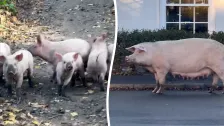 Eine Bande ausgelassener Schweine treibt ihr Unwesen auf den Straßen Großbritanniens (Großbritannien)