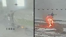Aufnahmen eines spektakulären ukrainischen Drohnenangriffs auf ein russisches Munitionsdepot sorgen für Aufsehen. Zwei FPV-Drohnen arbeiteten bei dem Manöver zusammen. Auf die Detonation der Ersten folgt eine weitaus größere Explosion.