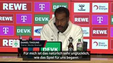 Werder Bremen kassiert eine empfindliche Pleite gegen Köln und rutscht damit auf den 15. Tabellenplatz ab. Trainer Daniel Thioune hadert im Anschluss mit dem Spielverlauf gegen den Effzeh.