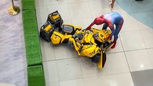 In Calamba auf den Philippinen verlor ein Bumblebee-Darsteller in einem Einkaufszentrum das Gleichgewicht und lag hilflos auf dem Boden. Zum Glück war Spider-Man vor Ort.