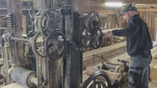 Junger Mann betreibt historisches Sägewerk