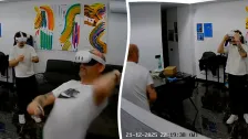 Papa landet auf dem Boden, als er versucht, im VR-Spiel zu fliehen