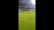 Nach einem kritischen Fehlpass eines Gegenspielers nimmt er sich die Kugel und schließt einfach mal ab!