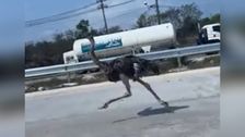 Ein Strauß ist aus seinem Gehege ausgebüxt und fand sich auf einer Autobahn wieder. Dort lief er mitten zwischen fahrenden Autos über die Fahrbahn.