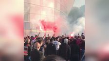 Befremdlicher Anblick am Hongkonger Flughafen: Am 20. April filmten Passagiere einen Wartungsmitarbeiter, der es sich im Triebwerksgehäuse eines Cathay-Pacific-Flugzeugs für ein Nickerchen bequem machte.