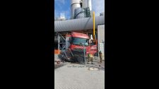 In der Nähe des Kraftwerks in Stuttgart-Bad Cannstatt ist am Donnerstagvormittag ein Lastwagen gegen eine Mauer gekracht.